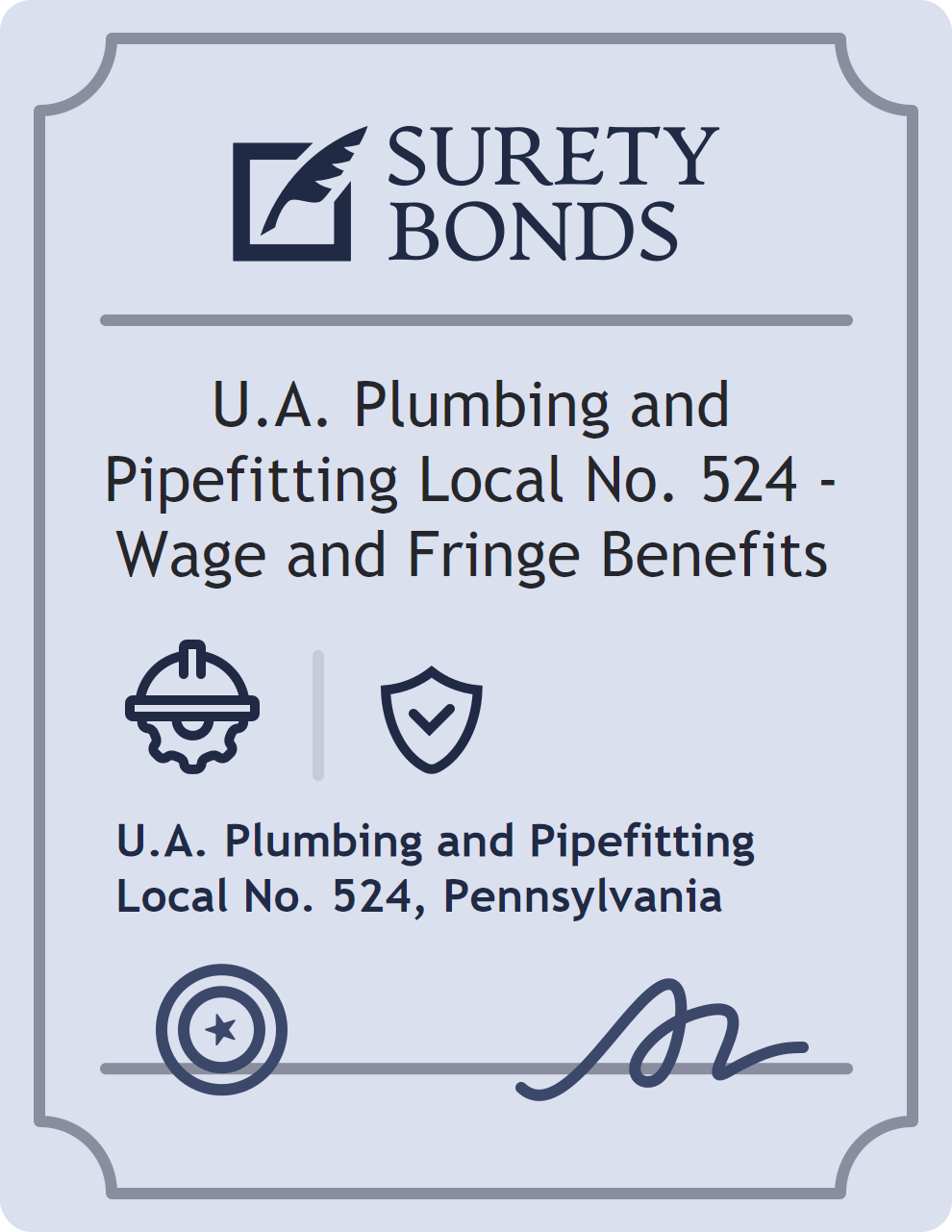 The U.A. Plumbing and Pipefitting Local No. 524 – Wage and Fringe Benefits is classified as a Contractor Bonds with a $10,000 obligation in Pennsylvania. Contractor Bonds are surety bonds required for individuals or businesses performing construction work. They guarantee that contractors will comply with building codes, licensing requirements, and contractual obligations. The bond provides financial protection to property owners and the public in cases of poor workmanship, regulatory violations, or unfinished work. The surety reviews financial strength, compliance history, and indemnity support before approving the obligation. Maintaining uninterrupted coverage for the entire 1 Year term is essential; lapses can trigger penalties, contract defaults, or license suspension in Pennsylvania. Underwriters typically request financial statements, references, and proof of licensing before quoting terms so they can evaluate repayment capacity. Throughout the bond term, the principal must maintain accurate books, respond to regulator inquiries, and remediate any complaints to prevent a claim. Many authorities in Pennsylvania also require renewal certificates 30 to 60 days in advance, and failure to provide proof can halt permitting or bid submissions. The $10,000 limit demonstrates to customers, partners, and oversight agencies that the bonded party maintains a reliable, surety-backed source of funds dedicated to ongoing compliance. The obligee for this bond is U.A. Plumbing and Pipefitting Local No. 524.