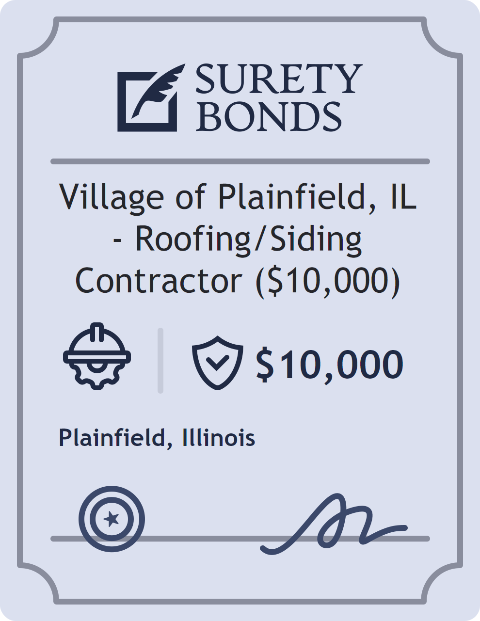 Village of Plainfield, IL – Roofing/Siding Contractor ($10,000) Bond