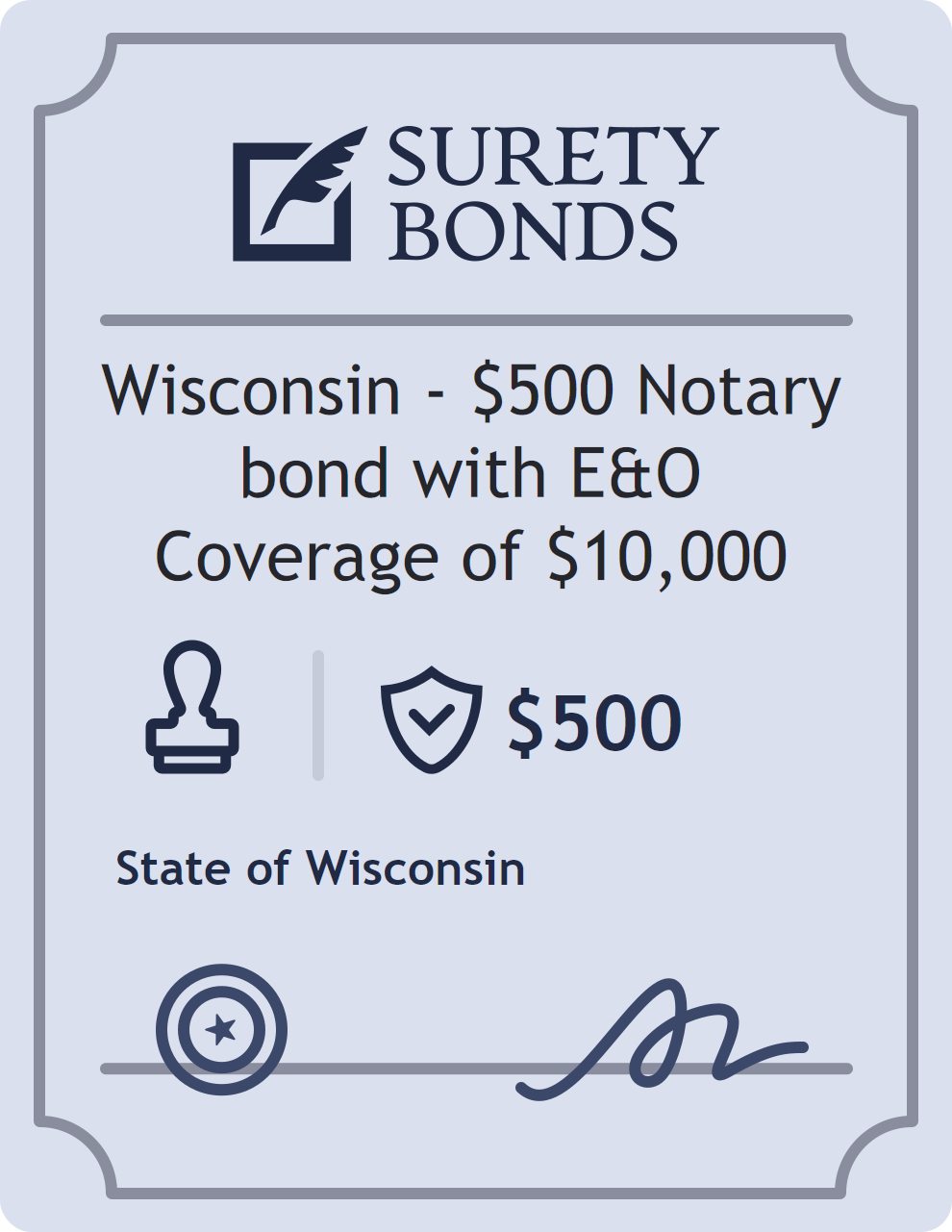 Wisconsin – $500 Notary bond with E&O Coverage of $10,000 Bond