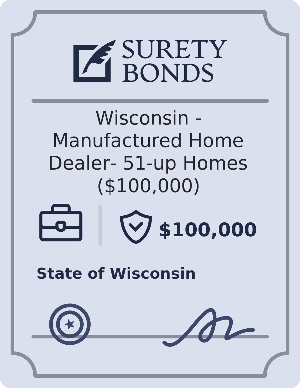 Wisconsin – Manufactured Home Dealer- 51-up Homes ($100,000) Bond